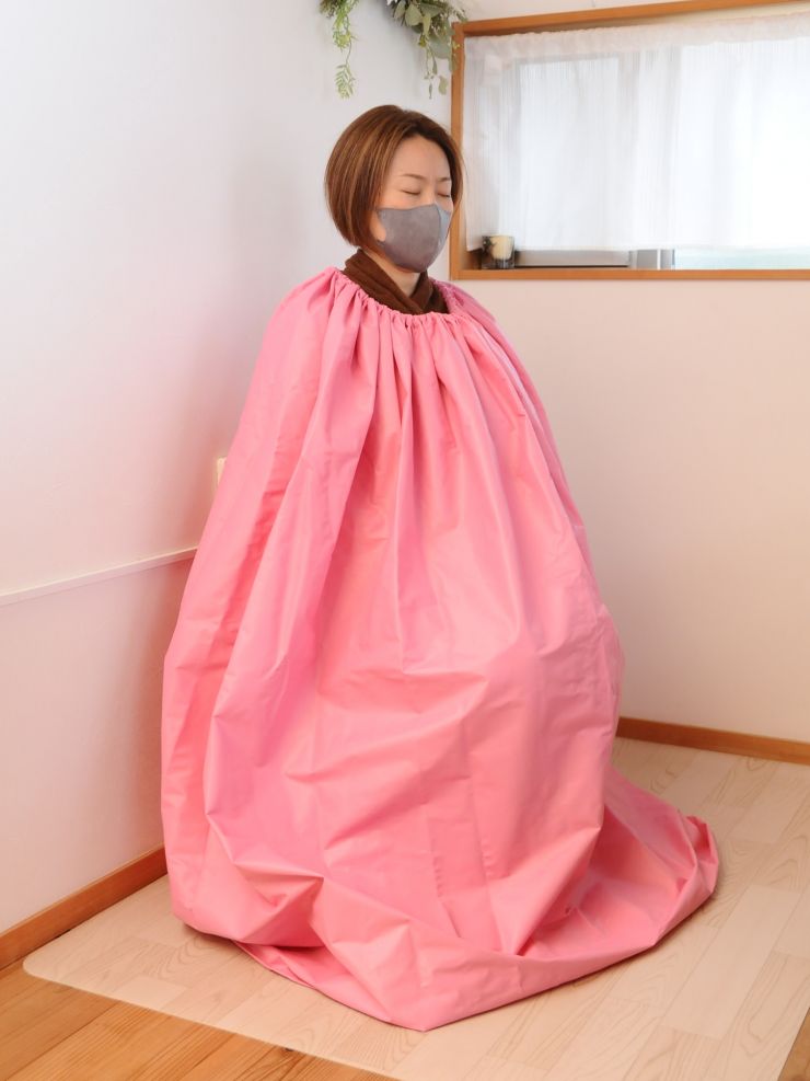 26種類の漢方をブレンドしたよもぎは3種類。美容用。婦人用、ダイエット用があります。座器に座る前に先に太ももからマントを着て足の裏に蒸気を当てる足浴顔まですっぽりマントを被る顔浴もします。足がむくむ方、白髪が気になる方、しっかり温まりたい方にオススメです。